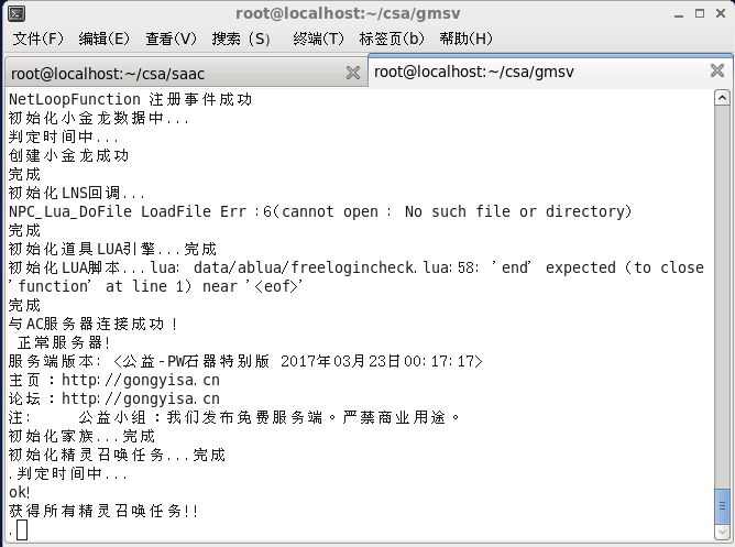成功启动saac,数据库正常连接以及游戏数据正常载入