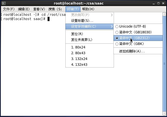 进入saac文件夹,打开终端之后,点击终端-设定支付编码-选择简体中文(GB2312)