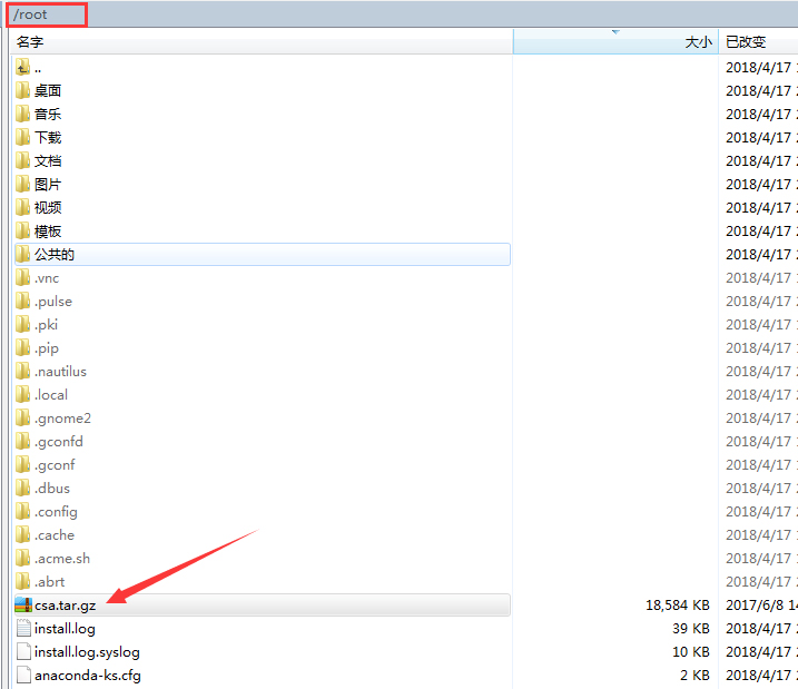 下载后解压服务端,解压后打开文件夹,用Winscp将服务端压缩包csa.tar.gz传至服务器根目录