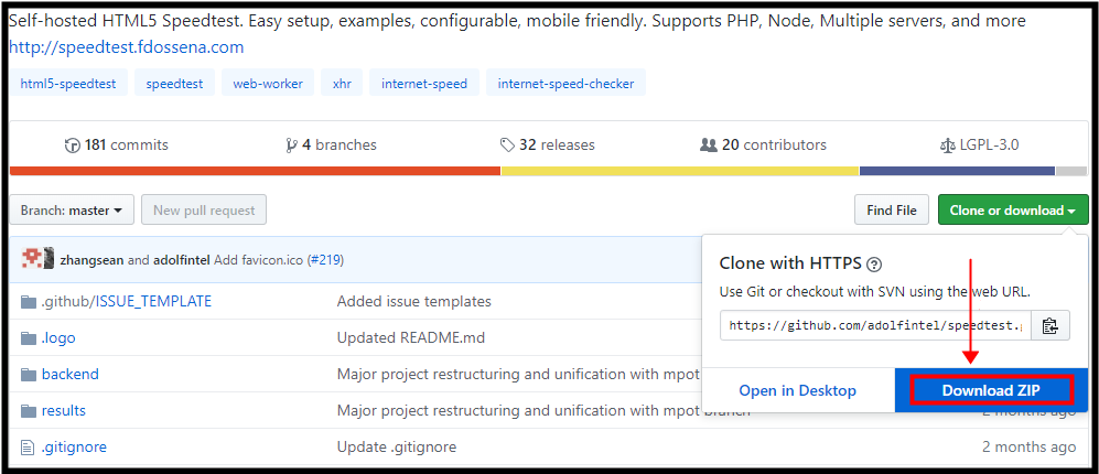 首先下载源码:https://github.com/adolfintel/speedtest/
