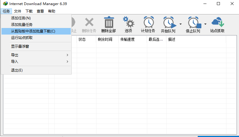 我们已经得到了所有的下载链接,是时候用IDM把它们下载下来了。我们打开IDM的主界面,找到“任务→从剪贴板中添加批量下载”,让IDM检测我们刚刚复制的下载链接。