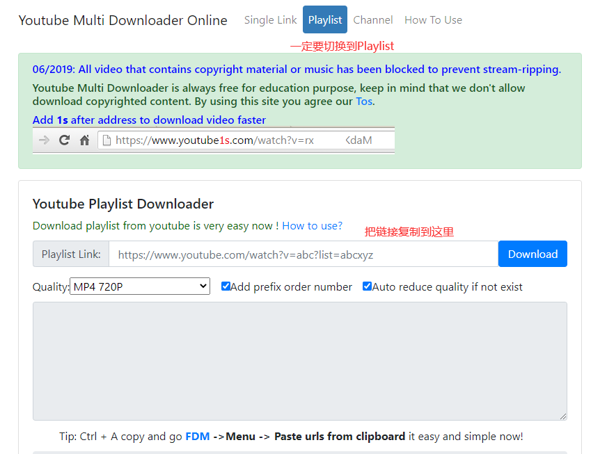 首先打开YouTube视频解析网站,这个网站不仅可以解析单独的视频下载地址,而且可以完整解析整个播放列表的下载地址。网页如下图: