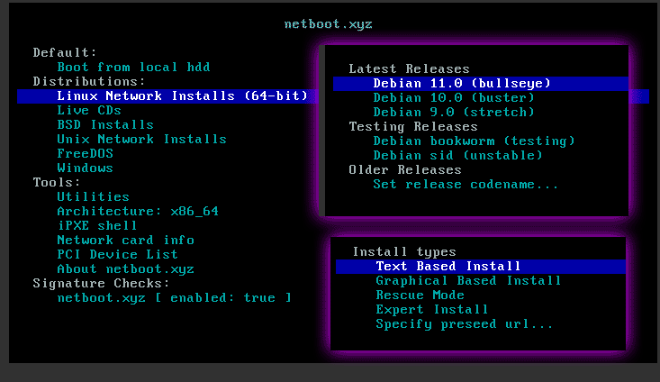 2、重启机器和进入VNC ,看到 netboot.xyz 启动检测