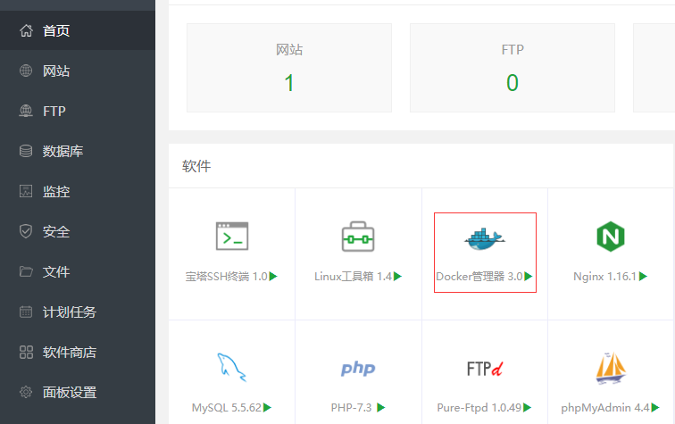 - 宝塔首页打开 docker 管理器
