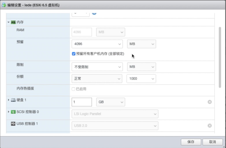 选择要直通进去的网卡就可以了,这里要注意下,直通的话必须要把 预留所有客户机内存(全部锁定)这个勾打上,不然会开不了机,点击保存就可以了。